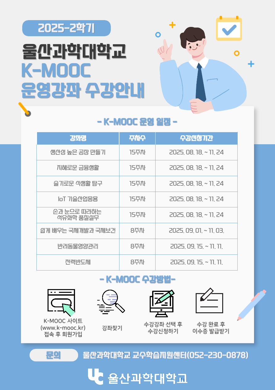 - 울산과학대학교 2025년 2학기 K-MOOC 강좌 수강 안내