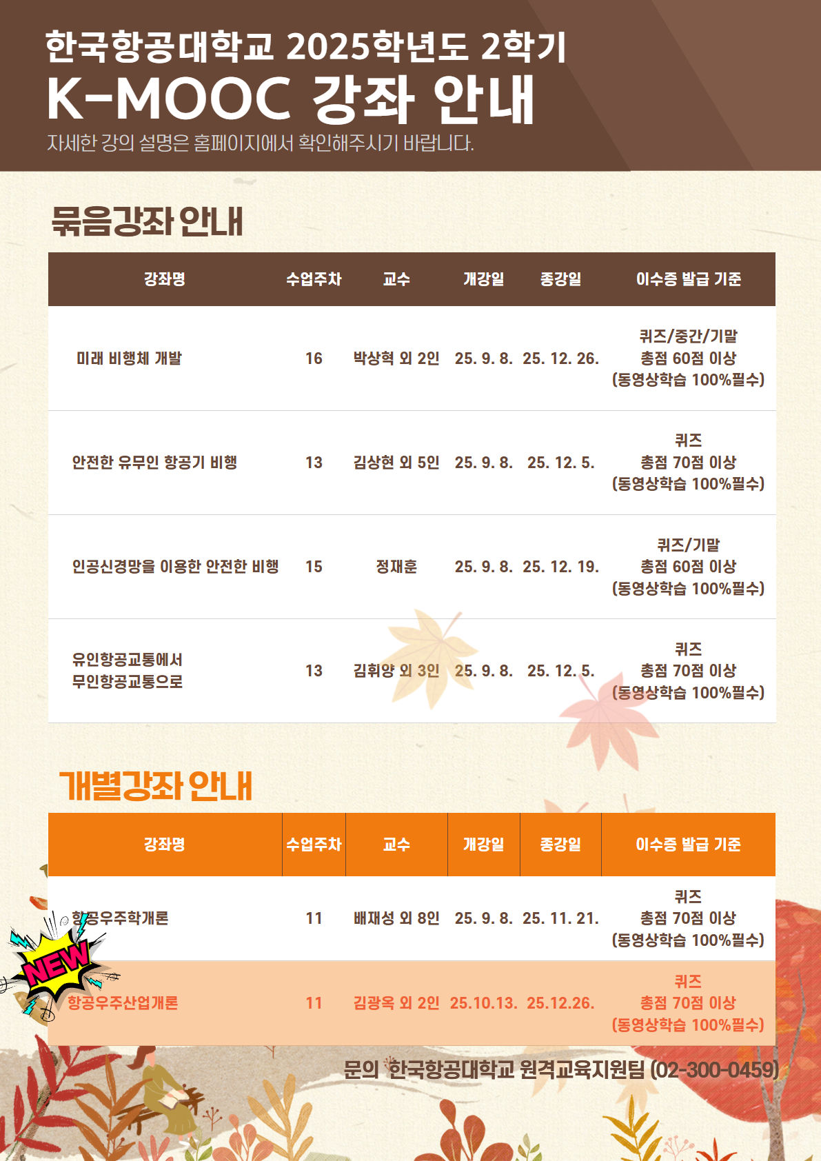 - 한국항공대학교 2025년 2학기 K-MOOC 강좌 수강 안내