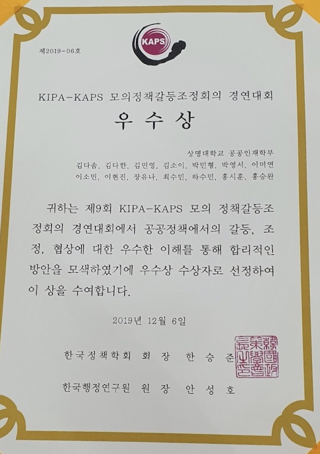 KIPA-KAPS 모의정책갈등조정회의 경연대회 우수상 수상