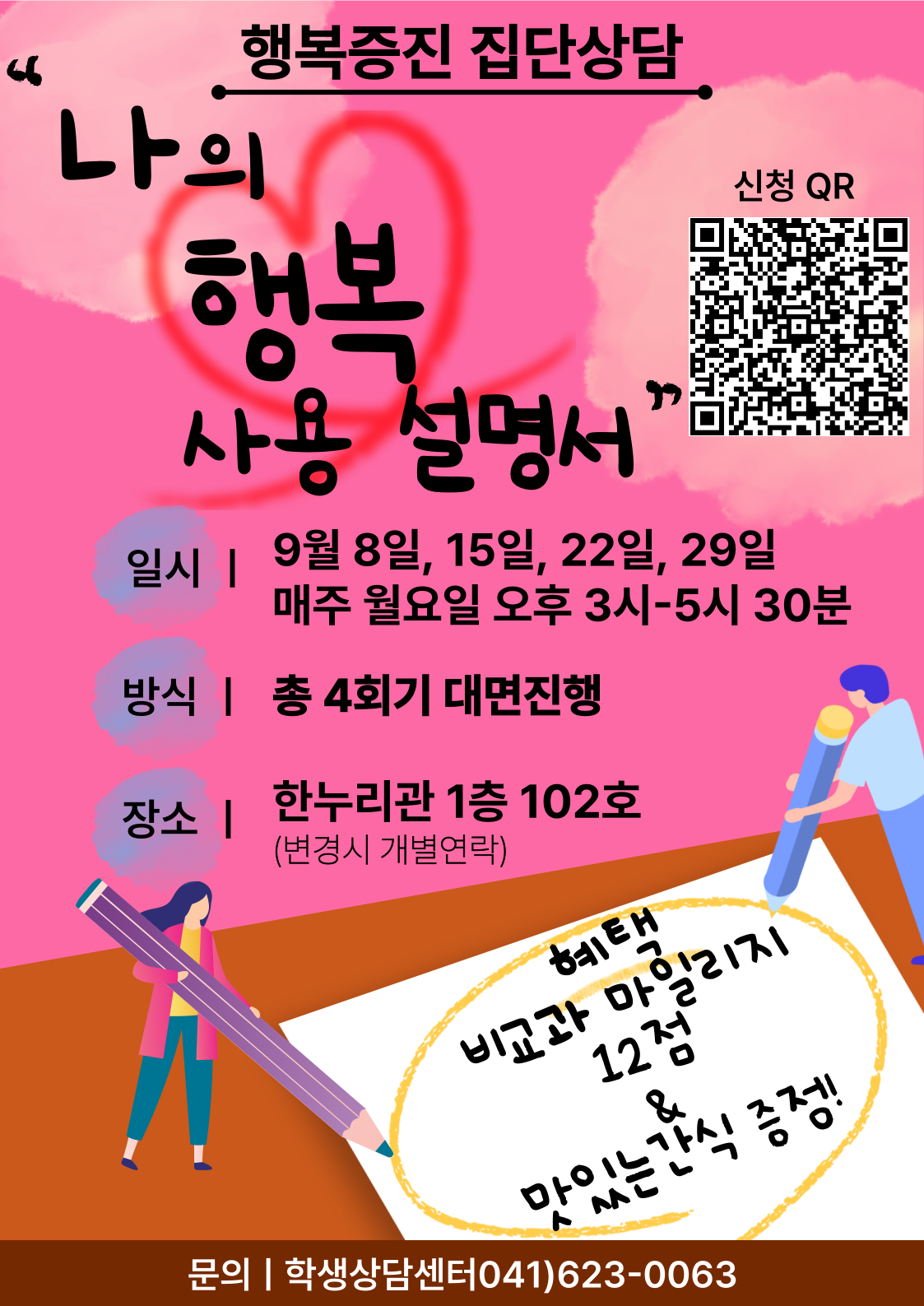 천안 [학생생활] [학생상담센터] 25-2 행복증진 집단상담 <나의 행복사용설명서> -